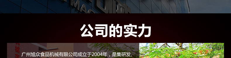 广州老子有钱官网食品机械有限公司是一家集科研开发,生产设计,营销服务为一体的现代化生产企业。现代化生产车间,精湛制造技术,所产机械历经市场重重考验,不断赢得海内外客户的赞誉。