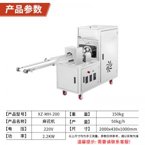 XZ-MH-200麻花机,技术支持、赠送配方、支持定制,1小时加工60斤麻花。切段均勺、且不粘面,麻花长短可调。可通过调节切刀时间、控制麻花的长度。通过精确控制成型,确保每根麻花大小均匀,外观一致,提高产品竞争力。